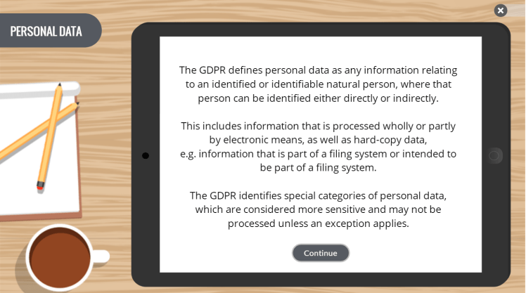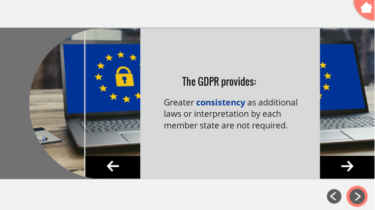 This module is an extract from a General Data Protection Regulation (GDPR) course I developed while working for IT Governance. This course layout has been developed to allow the user to view any information they want in any order that they want.