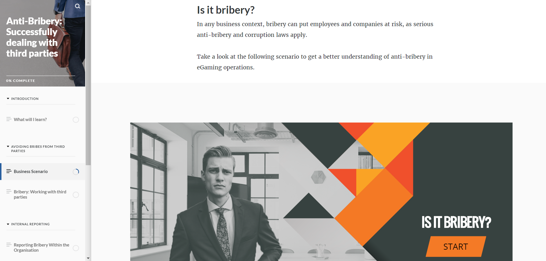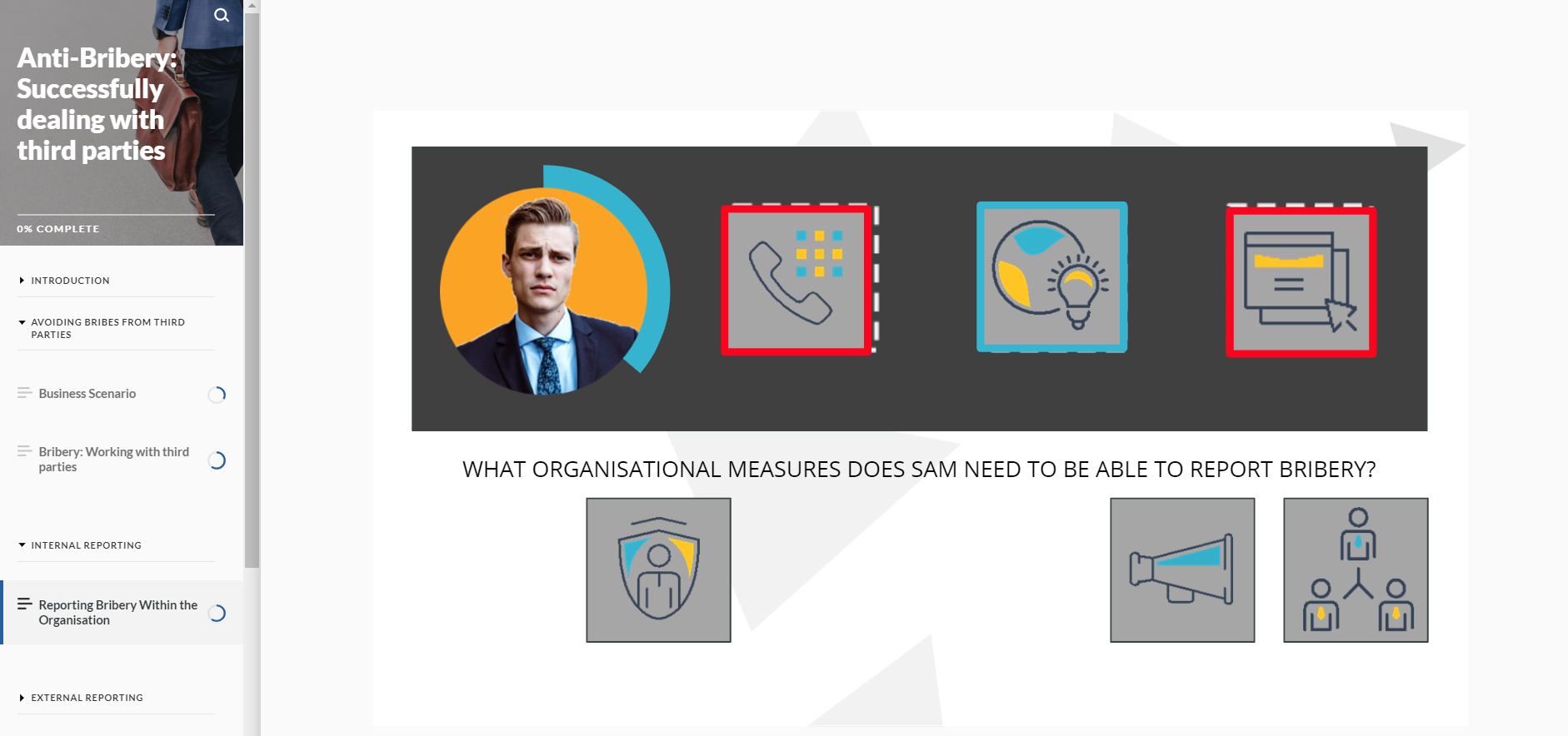 This is a demo course on how to recognise and avoid bribery from third party organisations.