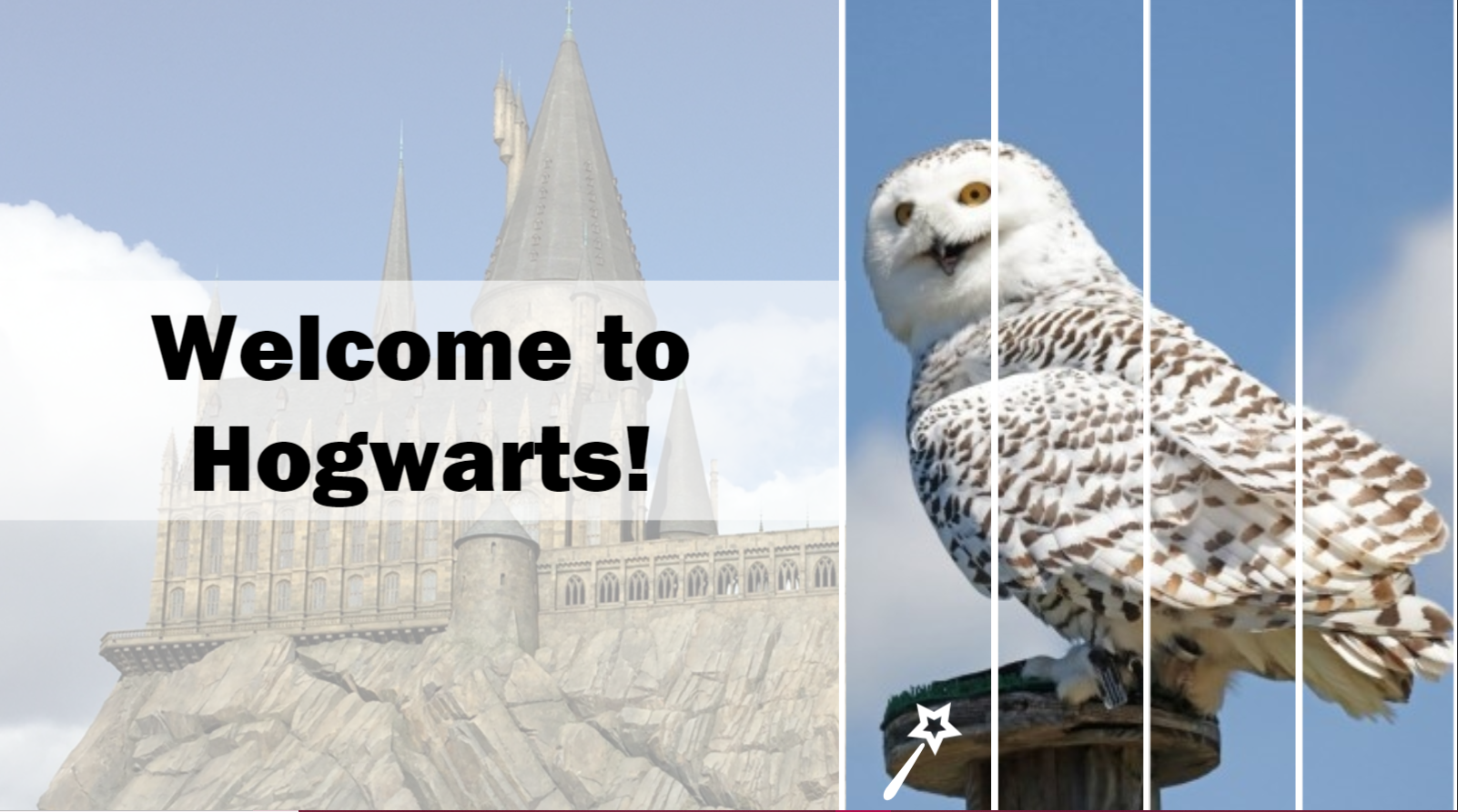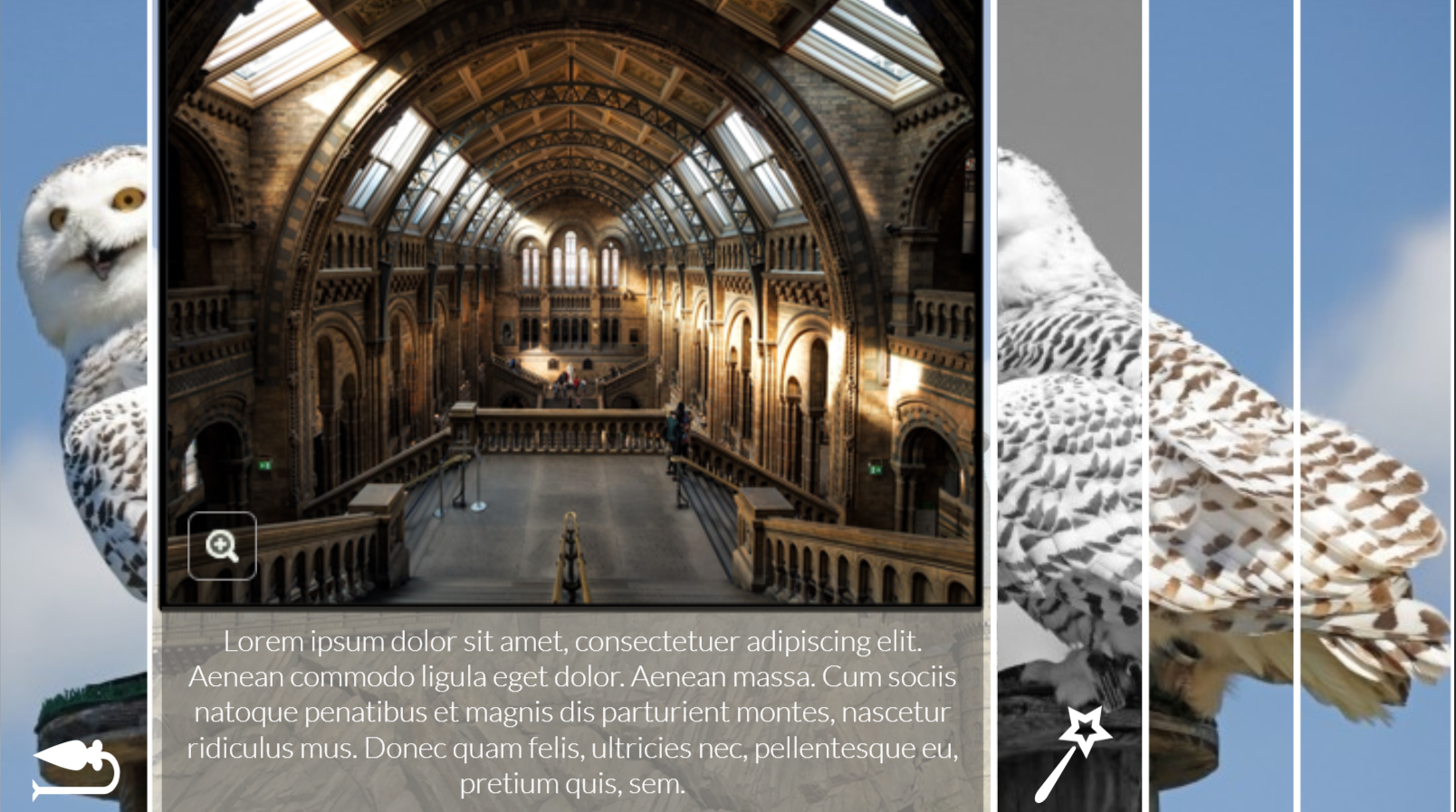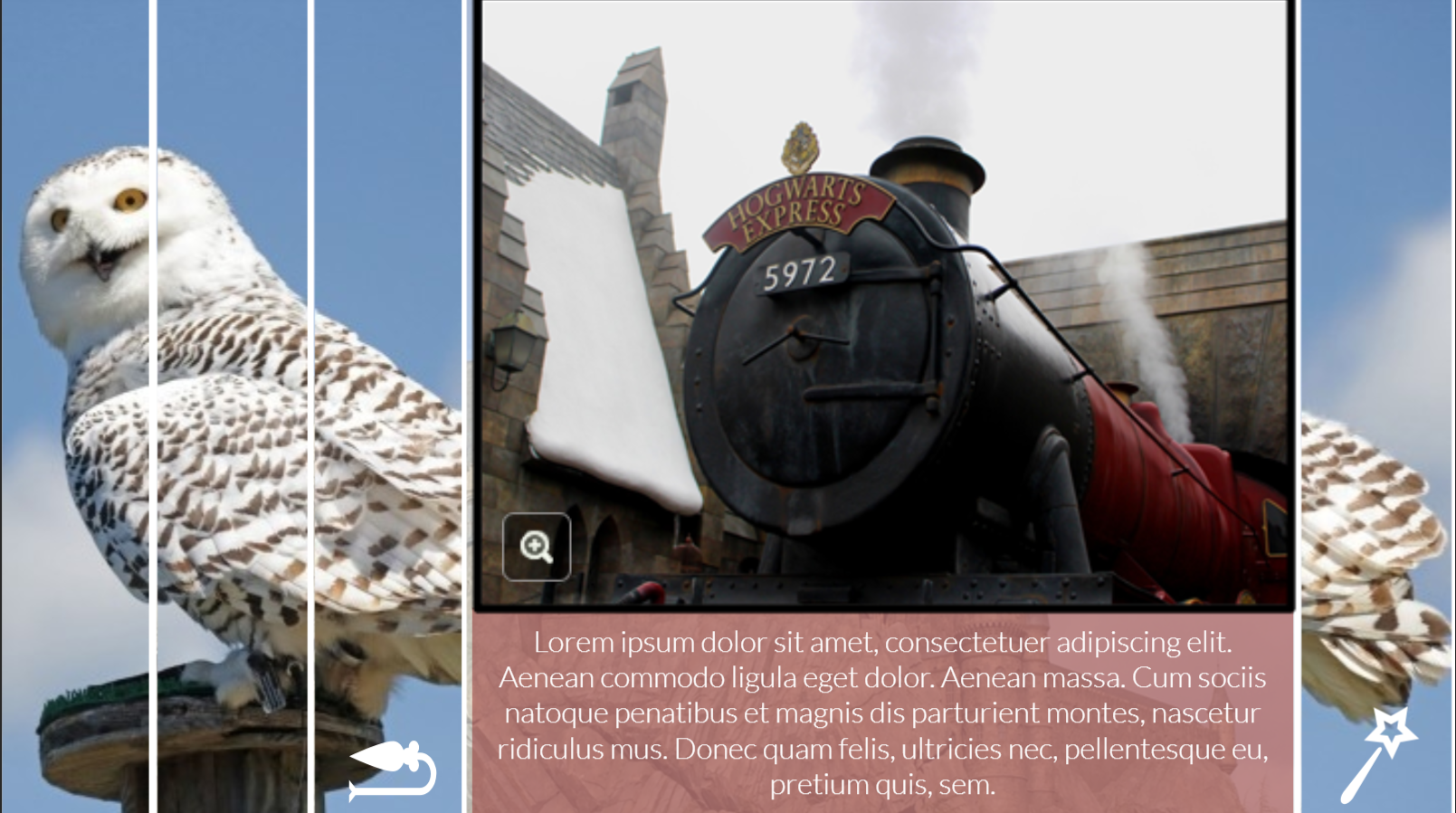 Dummy text has been used, but each tab is meant to present a different aspect of Hogwarts.