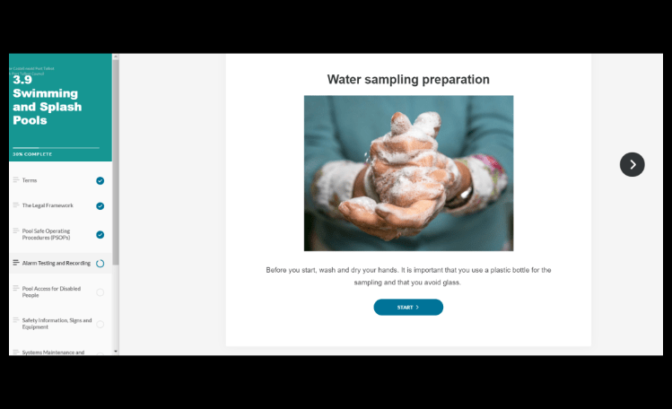 This was very quickly put together for a client who had 17 courses to launch within a month. It is a course for Responsible Persons in schools, who look after the premises and ensure compliance with standards. This was an interactive way to view content and a good an example of a Rise Course.